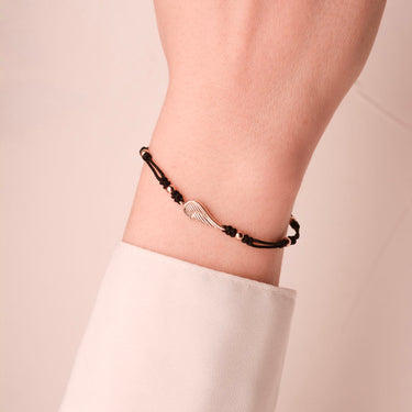 Dámsky zlatý náramok so šnúrkou a anjelským krídlom je doplnený celozlatými guličkami a detailne spracovanými uzlíky. Všetky komponenty sú vyrobené z žltého 14k 585/1000 zlata. Zapínanie je riešené praktickým predlžovacím a skracovacím mechanizmom pre obvod zápästia od 15 do 20cm. Šnúrkový náramok nie je nutné dávať dole na šport ani kúpanie a dorazí uložený v luxusnej darčekovej krabičke.