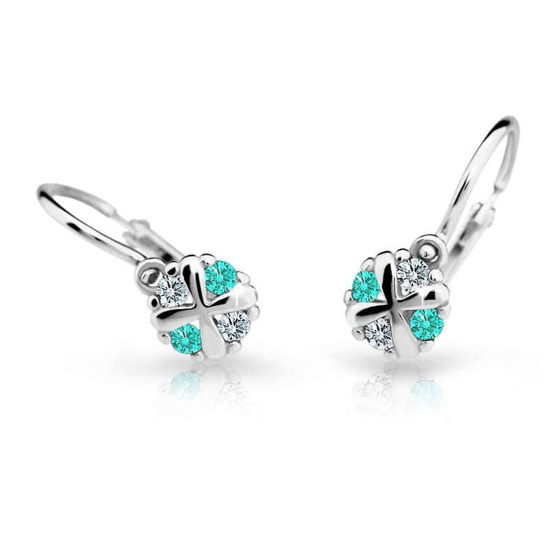 Náušnice pre bábätká Danfil C2153 z bieleho zlata, Mint Green, zapínanie brizura