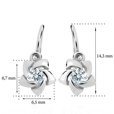 Detské náušničky v tvare klasik so zapínaním typu brizúra sú vyrobené z bieleho 14k zlata a osadené tyrkysovými zirkónmi. Zlaté náušnice majú puncovú značku 585/1000 od štátneho puncového úradu. Tento typ zapínania považujeme za jeden z najbezpečnejších a je najvhodnejší ako prvé náušničky pre bábätko. Všetky rozmery sú podrobne rozkreslené na podpornej fotografii. Ku každým náušničkám je možné vybrať si aj ladiaci prívesok s retiazkou.