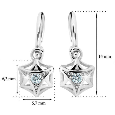 Detské náušničky v tvare klasik so zapínaním typu brizúra sú vyrobené z bieleho 14k zlata a osadené fialovými zirkónmi. Tento typ zapínania považujeme za jeden z najbezpečnejších a je najvhodnejší ako prvé náušničky pre bábätko. Všetky rozmery sú podrobne rozkreslené na podpornej fotografii. Ku každým náušničkám je možné vybrať si aj ladiaci prívesok s retiazkou.