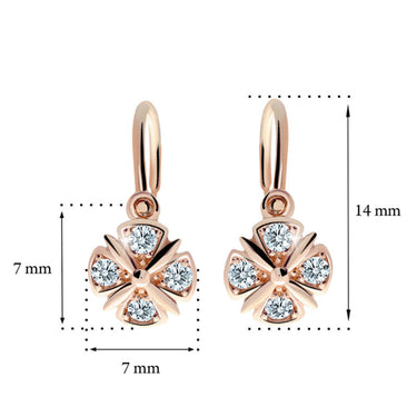 Náušnice pre bábätká Danfil C2245 zo ružového zlata, Mint Green, zapínanie brizura