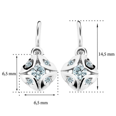 Detské náušničky v tvare klasik so zapínaním typu brizúra sú vyrobené z bieleho 14k zlata a osadené tyrkysovými kamienkami. Zlaté náušnice majú puncovú značku 585/1000 od štátneho puncového úradu. Tento typ zapínania považujeme za jeden z najbezpečnejších a je najvhodnejší ako prvé náušničky pre bábätko. Všetky rozmery sú podrobne rozkreslené na podpornej fotografii. Ku každým náušničkám je možné vybrať si aj ladiaci prívesok s retiazkou.