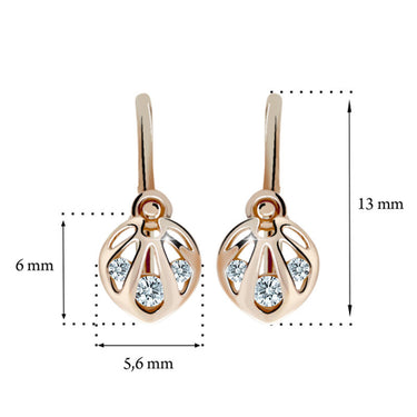 Detské náušničky v tvare klasik so zapínaním typu brizúra sú vyrobené z ružového 14k zlata a osadené fialovými kamienkami. Tento typ zapínania považujeme za jeden z najbezpečnejších a je najvhodnejší ako prvé náušničky pre bábätko. Všetky rozmery sú podrobne rozkreslené na podpornej fotografii. Ku každým náušničkám je možné vybrať si aj ladiaci prívesok s retiazkou.