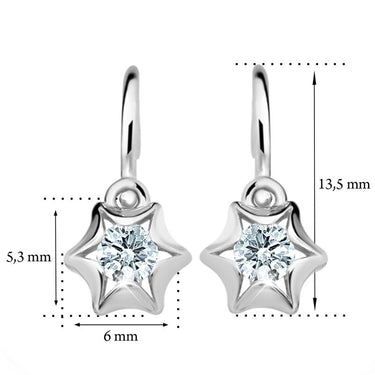 Detské náušničky v tvare hviezdičky so zapínaním typu brizúra sú vyrobené z bieleho 14k zlata a osadené tyrkysovými kamienkami. Tento typ zapínania považujeme za jeden z najbezpečnejších a je najvhodnejší ako prvé náušničky pre bábätko. Všetky rozmery sú podrobne rozkreslené na podpornej fotografii. Ku každým náušničkám je možné vybrať si aj ladiaci prívesok s retiazkou.