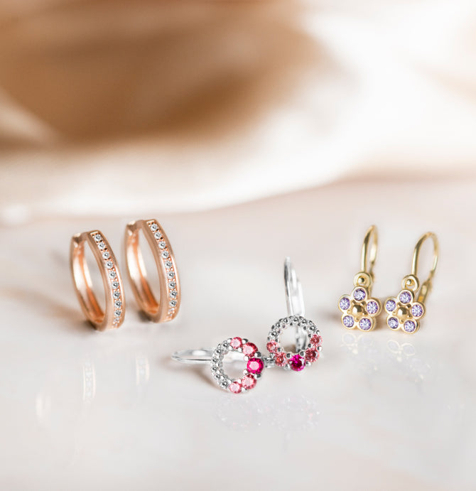 Detské náušničky v tvare hviezdičky so zapínaním typu brizúra sú vyrobené z žltého 14k zlata a osadené fialovými zirkónmi. Tento typ zapínania považujeme za jeden z najbezpečnejších a je najvhodnejší ako prvé náušničky pre bábätko. Všetky rozmery sú podrobne rozkreslené na podpornej fotografii. Ku každým náušničkám je možné vybrať si aj ladiaci prívesok s retiazkou.