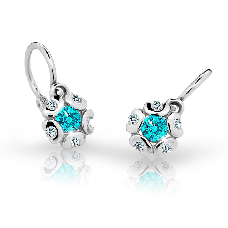 Náušnice pre bábätká Danfil kvetiny C2178 z bieleho zlata, Mint Green, zapínanie brizura