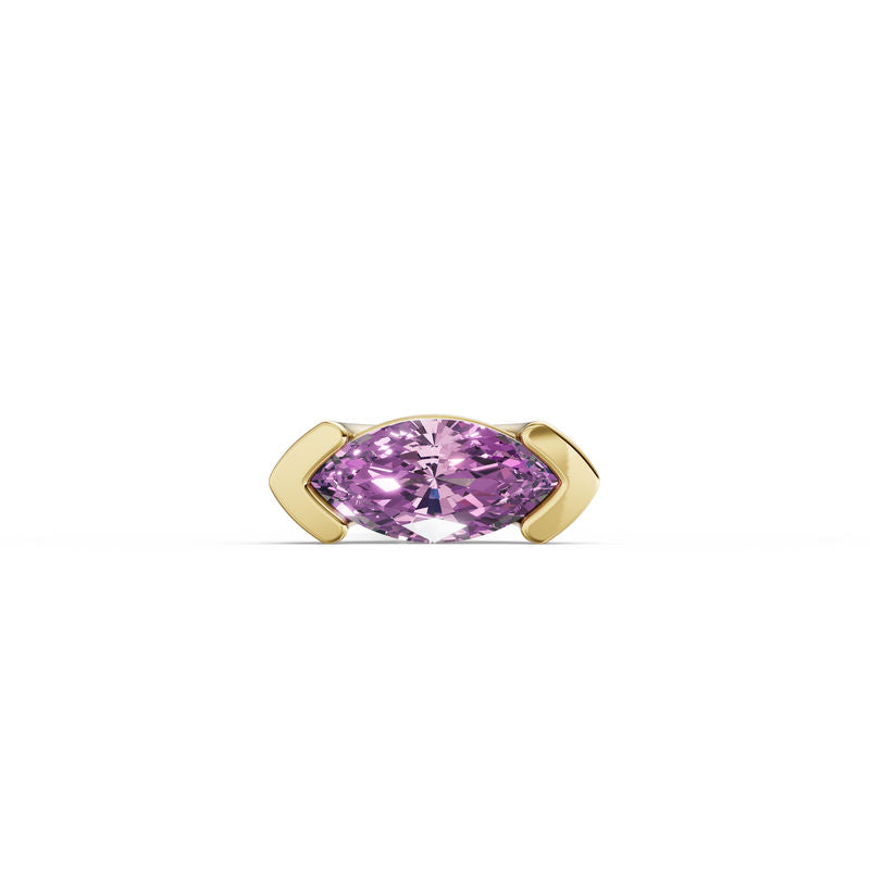 Jemná piercingová labreta ze 14 karátového žlutého zlata s vnitřním závitem zaujme elegantním a nadčasovým designem. Dominantou šperku je rhodolit ve tvaru markýzy o váze 0.112 ct, jehož sytý malinově červený odstín dodává šperku výrazný třpyt a luxusní charakter. Precizní zpracování a lesklý povrch podtrhují čisté linie tohoto jemného, ale nepřehlédnutelného šperku. Labreta je vhodná pro piercing helix, tragus, lobe, conch a flat a díky kvalitnímu provedení je ideální také pro první aplikaci piercingu. Elegantní doplněk pro každodenní nošení.