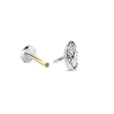 Jemná piercingová labreta z bílého 14 karátového zlata s vnitřním závitem, která je zakončena laboratorně vytvořeným diamantem Marquise brusu o váze 0,123 ct a rozměrech 5 × 2,5 mm. Je vhodná pro typ piercingu helix, tragus, lobe, conch a flat. Tloušťka tyčinky je 1 mm. Šperk lze použít pro první aplikaci piercingu. Součástí šperku je certifikát pravosti.