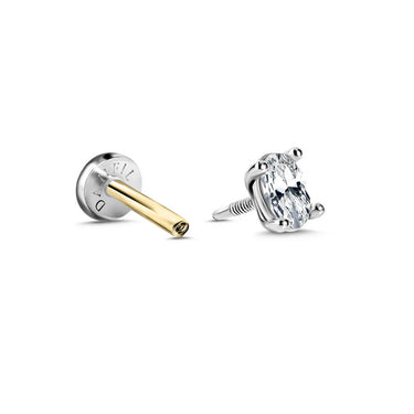 Elegantní piercingová labreta z bílého 14karátového zlata s vnitřním závitem, osazená laboratorně vytvořeným diamantem Oval brusu o váze 0,122 ct a rozměrech 3,8 × 2,7 mm. Jemný, ale výrazný šperk ideální pro piercing typu helix, tragus, lobe, conch i flat. Tyčinka má tloušťku 1 mm a je vhodná i pro první aplikaci piercingu. Součástí je certifikát pravosti laboratorního diamantu.
