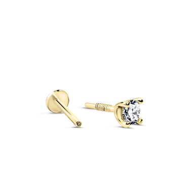 Jemná piercingová labreta ze žlutého 14 karátového zlata s vnitřním závitem, která je zakončena kulatým briliantem o váze 0.055 ct. Je vhodná pro typ piercingu helix, tragus, lobe, conch a flat. Tloušťka tyčinky je 1mm. Šperk lze použít pro první aplikaci piercingu.