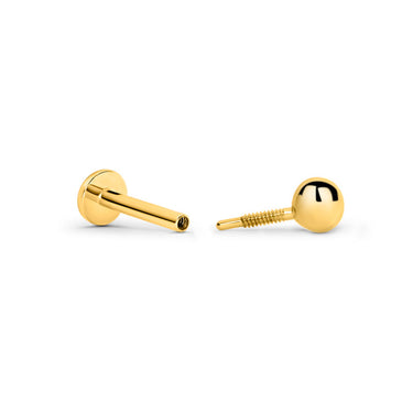 Jemný labret zo 14-karátového žltého zlata s vnútornou niťou v tvare guľôčky. Je vhodný na piercing do špirály, tragu, laloku, konchy a plochého piercingu. Šperk možno použiť na prvú aplikáciu piercingu.