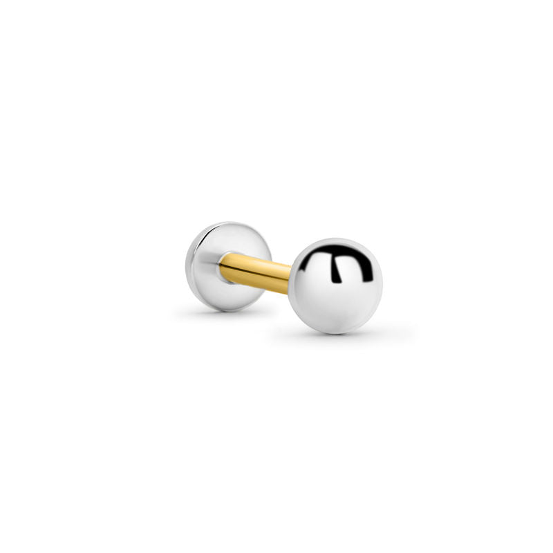 Jemný labyrint zo 14-karátového bieleho zlata s vnútornou niťou v tvare guľôčky. Je vhodný na piercing do špirály, tragu, laloku, konchy a plochého piercingu. Šperk možno použiť na prvú aplikáciu piercingu.