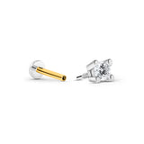 Jemný piercing do labretu z bieleho 14K zlata s vnútorným závitom, ktorý je ukončený okrúhlym briliantom s hmotnosťou 0,055 ct a priemerom 2,4 mm. Je vhodný pre helix, tragus, lalok, konch a ploché typy piercingu. Hrúbka tyčinky je 1 mm. Šperk je možné použiť na prvú aplikáciu piercingu.