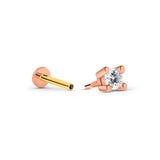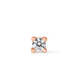 Jemný piercing z ružového 14K zlata s vnútorným závitom, ktorý je ukončený okrúhlym briliantom s hmotnosťou 0,055 ct a priemerom 2,4 mm. Je vhodný pre helix, tragus, lalok, konch a ploché typy piercingu. Hrúbka tyčinky je 1 mm. Šperk je možné použiť na prvú aplikáciu piercingu.