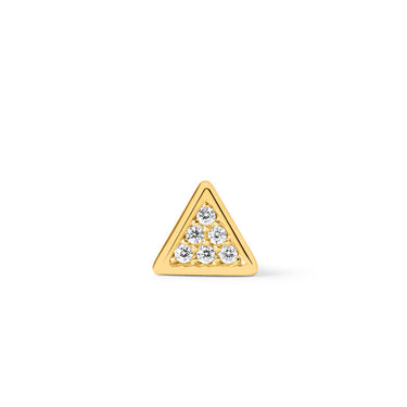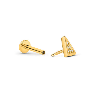 Jemný piercingový labyrint zo 14-karátového žltého zlata s vnútorným závitom v tvare trojuholníka a šiestimi trblietavými okrúhlymi briliantmi s celkovou hmotnosťou 0,024 ct. Je vhodný na piercing do špirály, tragu, laloku, konchy a plochého piercingu. Hrúbka tyčinky je 1 mm. Šperk možno použiť na prvú aplikáciu piercingu.