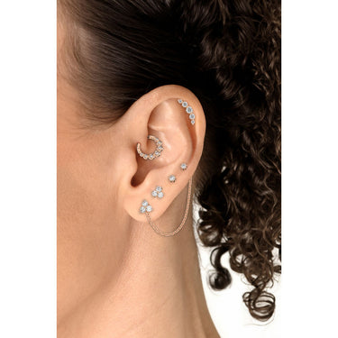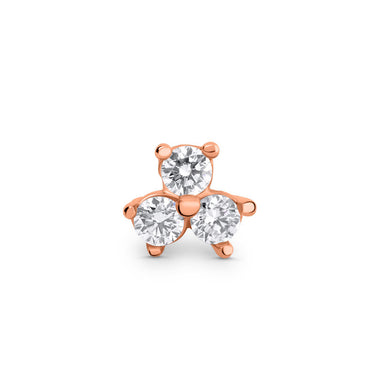 Jemný piercingový labyrint zo 14-karátového ružového zlata s vnútorným závitom, ktorý je osadený tromi briliantmi s celkovou hmotnosťou 0,165 ct. Je vhodný na špirálový, laločnatý, konchový a plochý piercing. Šperk možno použiť na prvú aplikáciu piercingu.
