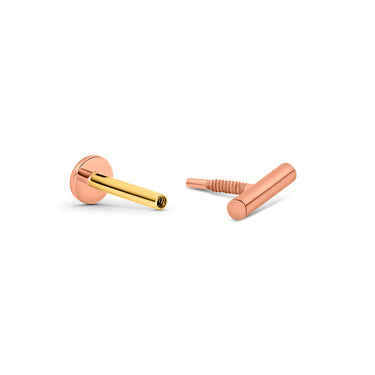 Jemný piercingový labyrint zo 14-karátového ružového zlata s vnútorným závitom v tvare malého valca. Vhodný na helix, tragus, lalok, konch a plochý piercing. Šperk možno použiť na prvú aplikáciu piercingu.