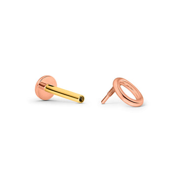 Jemný piercingový labyrint zo 14-karátového ružového zlata s vnútornou niťou v tvare krúžku. Vhodný na helix, tragus, lalok, konch a plochý piercing. Šperk možno použiť na prvú aplikáciu piercingu.