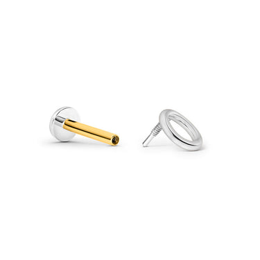 Jemný labyrint zo 14-karátového bieleho zlata s vnútornou niťou v tvare krúžku. Je vhodný na piercing do špirály, tragu, laloku, konchy a plochého piercingu. Šperk možno použiť na prvú aplikáciu piercingu.