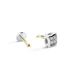 Jemný piercingový labyrint z bieleho 14-karátového zlata s vnútornou niťou v tvare štvorca, ktorý je posiaty okrúhlymi briliantmi s celkovou hmotnosťou 0,012 ct. Je vhodný pre helix, tragus, lalok, konch a ploché typy piercingu. Šperk je možné použiť na prvú aplikáciu piercingu.