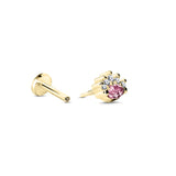 Piercingové náušnice Labreta DF 6094 zo žltého zlata s diamantmi a ružovým zafírom