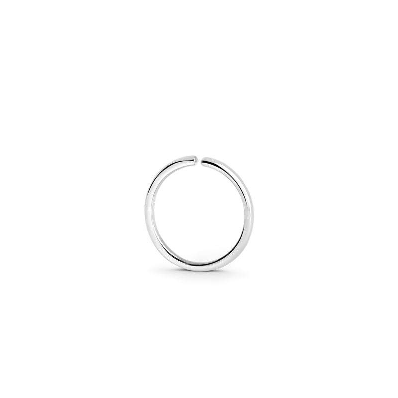 Jemné piercingové náušnice v tvare kruhu z bieleho 14-karátového zlata. Hrúbka kruhu je 0,8 mm a priemer 10 mm. Je vhodná na piercing typu helix a lalok. Tento model nemá tradičné zapínanie - stačí ho vytiahnuť do strany, nasadiť a potom opäť vytiahnuť späť. Tento mechanizmus zaručuje jednoduché a bezpečné nosenie