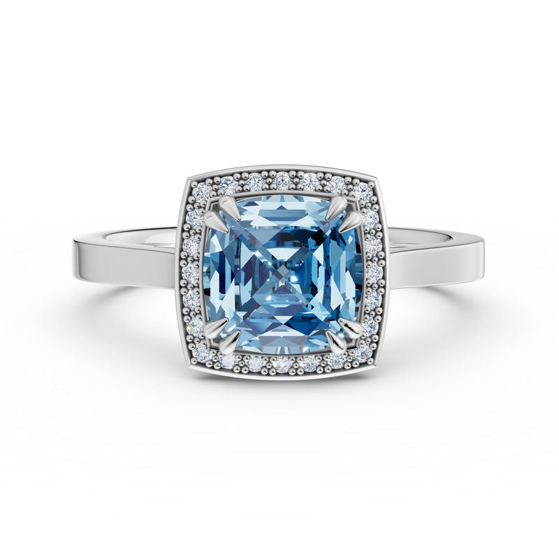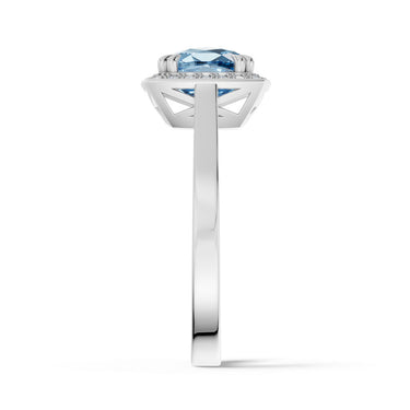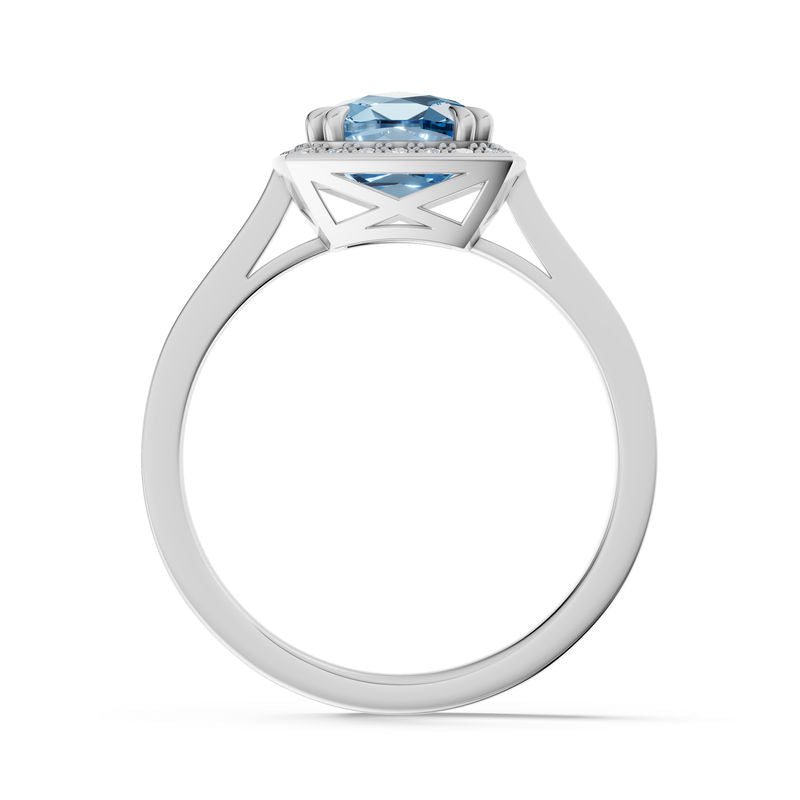 Prsten je vyrobený ze 14 karátového bílého zlata a je osazen středovým kamenem Blue Sky Topaz a 24 diamanty briliantového brusu o celkové hmotnosti 1.616 ct. Diamanty v kvalitě SI1, barvy G a s excelentním brusem vytvářejí oslnivý třpyt, který dokonale zvýrazňuje krásu středového topazu. Lesklá obroučka dodává prstenu nadčasovou eleganci, zatímco precizní zasazení kamenů zajišťuje harmonický a luxusní vzhled. Prsten je vhodný jak pro slavnostní příležitosti, tak pro každodenní nošení. Šperk je uložen v luxusní dárkové krabičce a doplněn certifikátem pravosti.