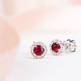Zlaté dámske náušnice DF 3100, rubín s diamantmi, biele zlato