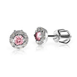 Zlaté dámske náušnice DF 3100, ružový zafír s diamantmi, biele zlato