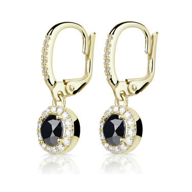 Zlaté dámske náušnice DF 3107, čierne diamanty, žlté zlato