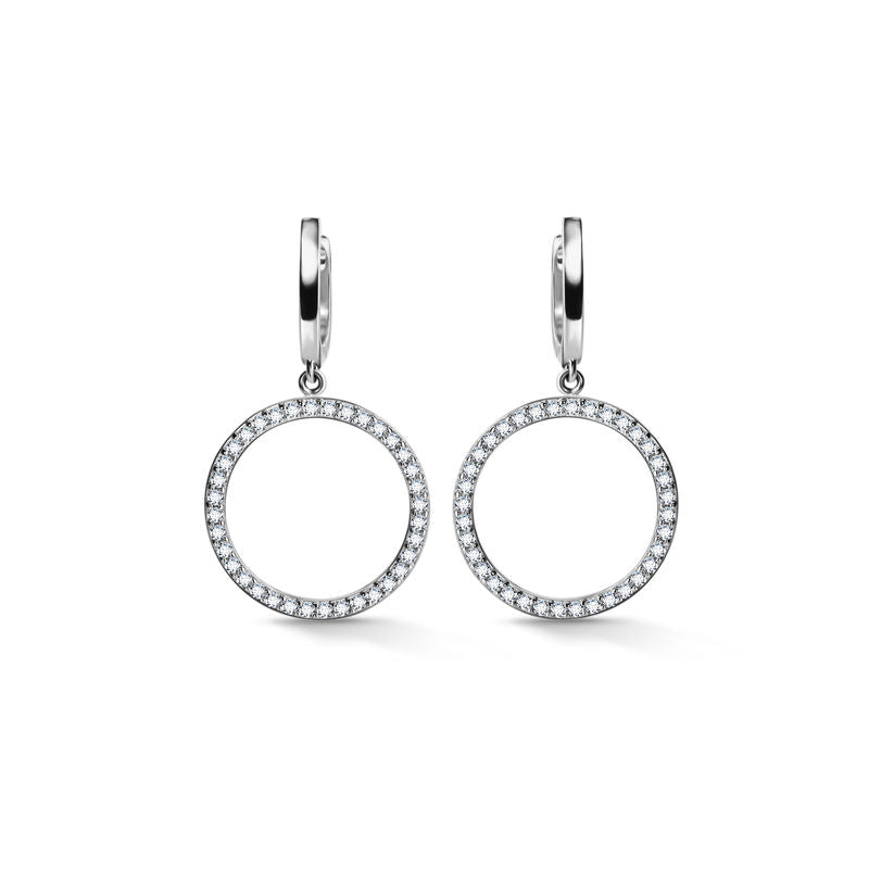 Luxusné visiace náušnice Danfil Diamonds z bieleho 14-karátového zlata so zapínaním na puzetu zvýraznené 72 nádhernými okrúhlymi briliantmi s celkovou hmotnosťou 0,720 ct. Tieto náušnice majú lesklý povrch. Šperk je dodávaný v luxusnej darčekovej krabičke spolu s certifikátom pravosti.
