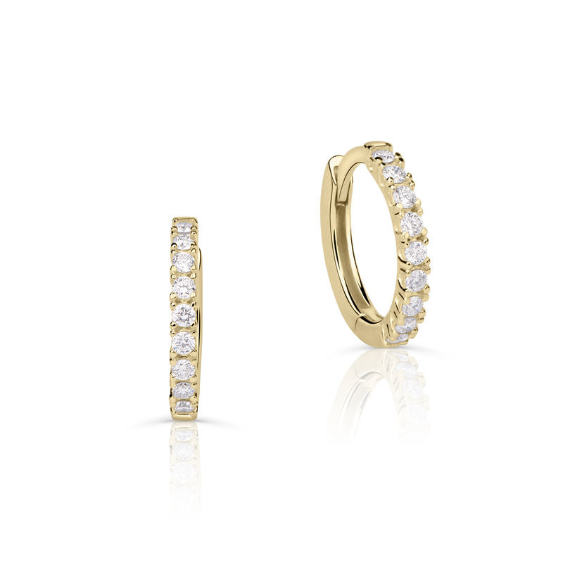 Luxusné okrúhle náušnice zo 14-karátového žltého zlata s okrúhlym briliantom s celkovou hmotnosťou 0,216 ct. Tieto náušnice majú lesklý povrch. Šperk je dodávaný v luxusnej darčekovej krabičke spolu s certifikátom pravosti.