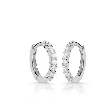 Krásne náušnice okrúhleho tvaru z bieleho 14-karátového zlata, zdobené 0,350 ct trblietavými diamantmi okrúhleho brusu. Tieto náušnice majú snehobiely lesklý povrch. Šperk je uložený v luxusnej darčekovej krabičke spolu s certifikátom pravosti.