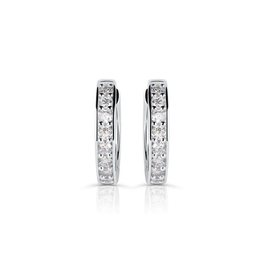 Krásne náušnice okrúhleho tvaru z bieleho 14-karátového zlata, zdobené 0,288 ct trblietavými diamantmi okrúhleho brusu. Tieto náušnice majú snehobiely lesklý povrch. Šperk sa dodáva v luxusnej darčekovej krabičke spolu s certifikátom pravosti.