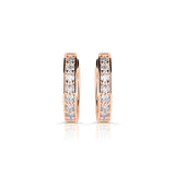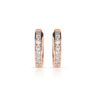 Krásne okrúhle náušnice zo 14 karátového ružového zlata, osadené 0,288 ct okrúhlymi brúsenými šumivými diamantmi. Tieto náušnice majú lesklý povrch. Šperk je dodávaný v luxusnej darčekovej krabičke spolu s certifikátom pravosti.