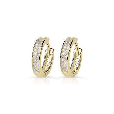 Krásne náušnice okrúhleho tvaru zo žltého 14-karátového zlata, zdobené 0,208 ct trblietavými diamantmi okrúhleho brusu. Tieto náušnice majú lesklý povrch. Šperk sa dodáva v luxusnej darčekovej krabičke spolu s certifikátom pravosti.