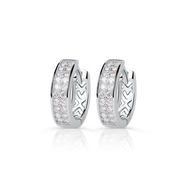 Nádherné náušnice okrúhleho tvaru z bieleho 14-karátového zlata, zdobené iskrivými diamantmi s celkovou hmotnosťou 0,360 ct. Tieto náušnice majú snehobiely lesklý povrch. Šperk sa dodáva v luxusnej darčekovej krabičke spolu s certifikátom pravosti.
