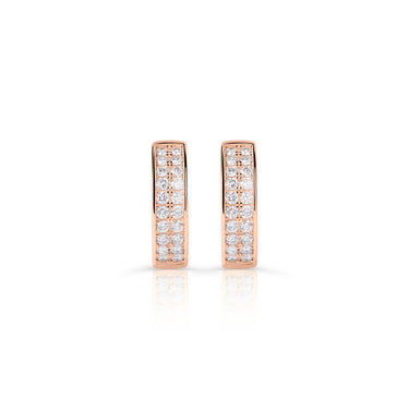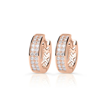 Krásne okrúhle náušnice zo 14 karátového ružového zlata, osadené iskrivými diamantmi s celkovou hmotnosťou 0,360 ct. Tieto náušnice majú lesklý povrch. Šperk je dodávaný v luxusnej darčekovej krabičke spolu s certifikátom pravosti.