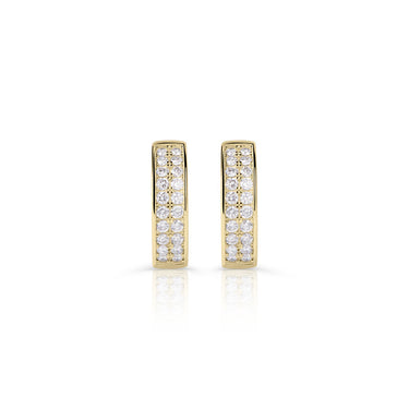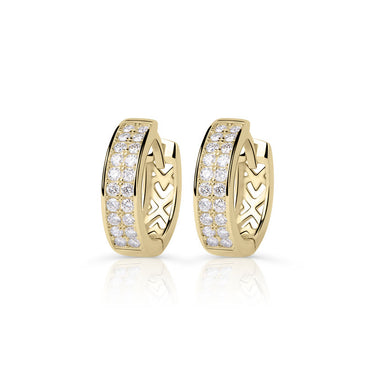 Krásne náušnice okrúhleho tvaru zo žltého 14-karátového zlata, zdobené 0,360 ct trblietavými diamantmi okrúhleho brusu. Tieto náušnice majú lesklý povrch. Šperk sa dodáva v luxusnej darčekovej krabičke spolu s certifikátom pravosti.