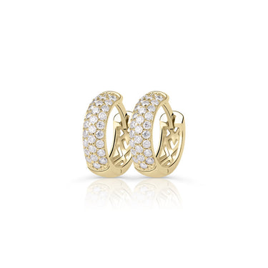 Krásne náušnice okrúhleho tvaru zo žltého 14-karátového zlata, zdobené 0,272 ct okrúhlymi brúsenými iskrivými diamantmi. Tieto náušnice majú lesklý povrch. Šperk sa dodáva v luxusnej darčekovej krabičke spolu s certifikátom pravosti.
