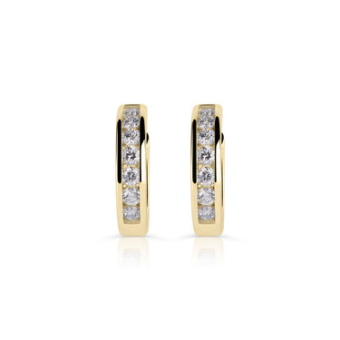 Krásne náušnice okrúhleho tvaru zo žltého 14-karátového zlata zdobené 0,350 ct trblietavými diamantmi okrúhleho brusu. Tieto náušnice majú lesklý povrch. Šperk sa dodáva v luxusnej darčekovej krabičke spolu s certifikátom pravosti.