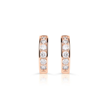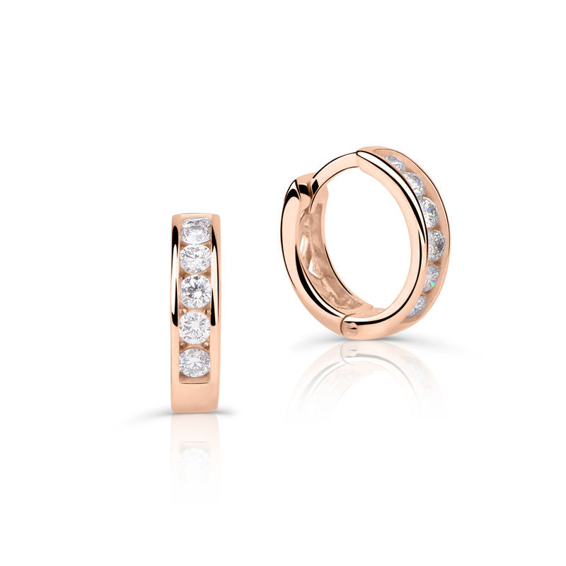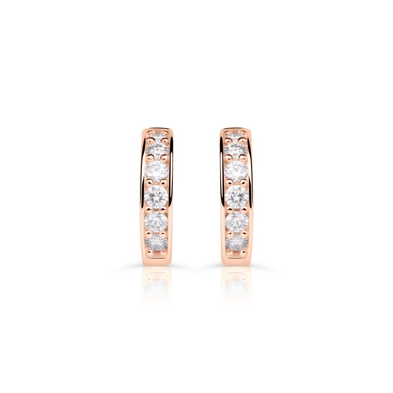 Krásne náušnice okrúhleho tvaru zo 14-karátového ružového zlata, zdobené 0,420 ct trblietavými diamantmi okrúhleho brusu. Tieto náušnice majú lesklý povrch. Šperk sa dodáva v luxusnej darčekovej krabičke spolu s certifikátom pravosti.