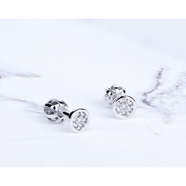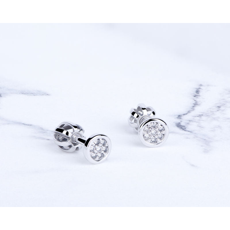 Krásne náušnice Danfil Diamonds z bieleho 14 karátového zlata so zapínaním typu balónik zvýraznené 14 trblietavými diamantmi okrúhleho brusu o celkovej váhe 0.056 ct. Šperk je uložený v luxusnej darčekovej krabičke spolu s certifikátom pravosti.