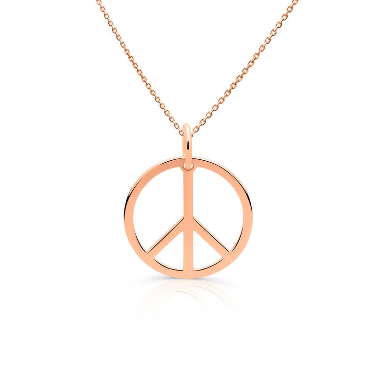 Luxusný celozlatý prívesok PEACE zo 14 karátového zlata. Ide o symbol mieru, lásky a života bez nenávisti. Prívesok má lesklý povrch. Šperk je uložený v luxusnej darčekovej krabičke.