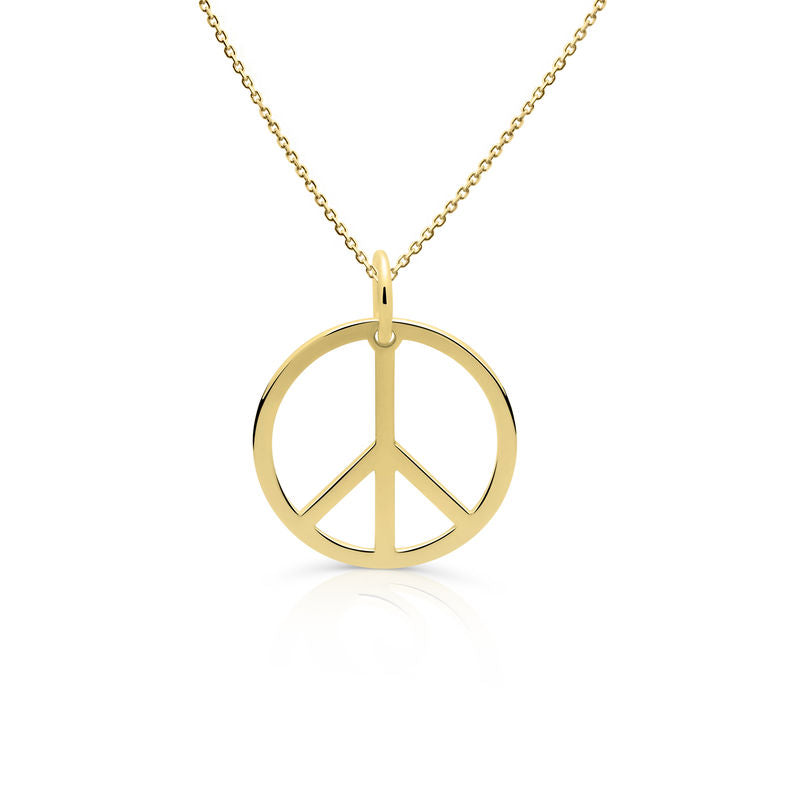Luxusný celozlatý prívesok PEACE zo 14 karátového zlata. Ide o symbol mieru, lásky a života bez nenávisti. Prívesok má lesklý povrch. Šperk je uložený v luxusnej darčekovej krabičke.
