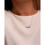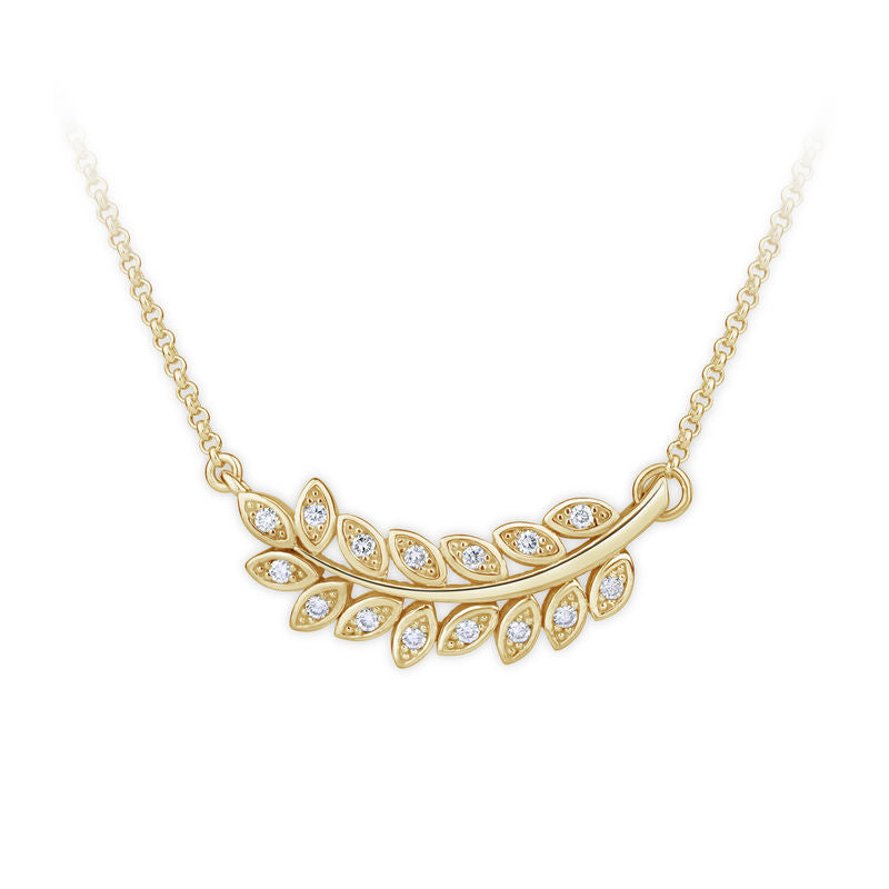 Krásny náhrdelník zo žltého 14-karátového zlata s 15 trblietavými diamantmi okrúhleho brusu s celkovou hmotnosťou 0,135 ct. Prívesok má lesklý povrch a pevne navlečenú retiazku. Šperk sa dodáva v luxusnej darčekovej krabičke spolu s certifikátom pravosti.