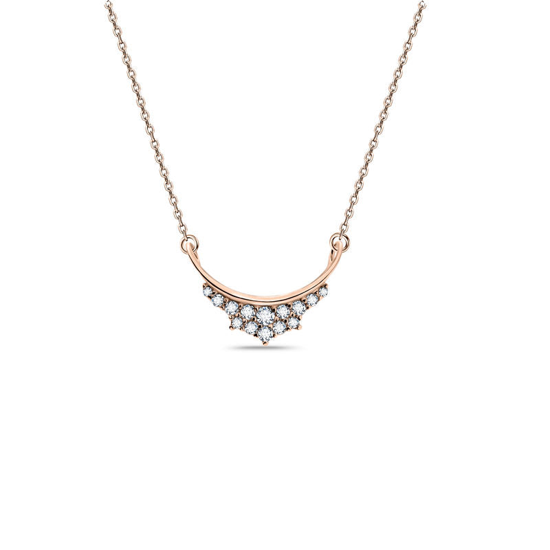 Luxusný náhrdelník vyrobený zo 14-karátového ružového zlata a osadený 14 briliantmi s okrúhlym brúsením a hmotnosťou 0,17 ct. Prívesok má lesklý povrch. Dĺžka retiazky vrátane prívesku je približne 43 cm. Šperk sa dodáva v luxusnej darčekovej krabičke spolu s certifikátom pravosti.