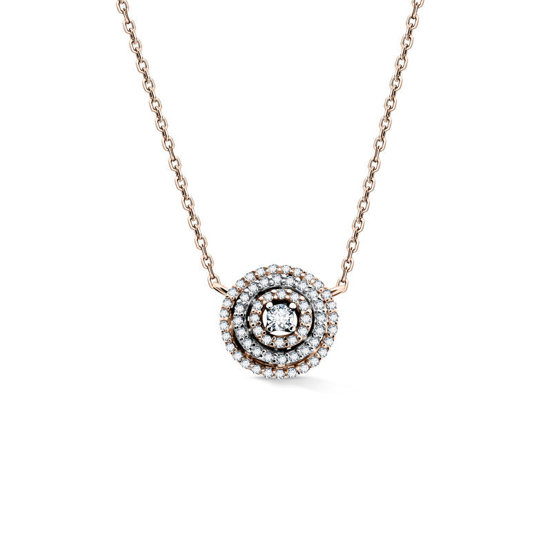 Luxusný náhrdelník v kombinácii ružového a bieleho 14-karátového zlata osadený 61 iskrivými okrúhlymi briliantmi s celkovou hmotnosťou 0,235 ct. Prívesok má lesklý povrch. Dĺžka retiazky vrátane prívesku je približne 43 cm. Šperk sa dodáva v luxusnej darčekovej krabičke spolu s certifikátom pravosti.