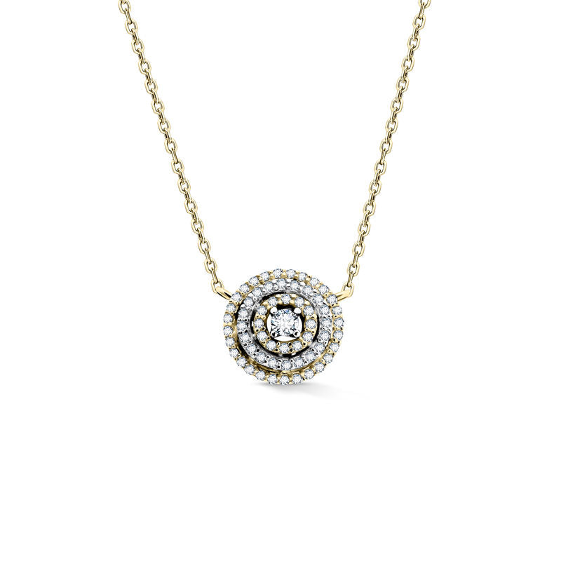 Luxusný náhrdelník v kombinácii žltého a bieleho 14-karátového zlata osadený 61 iskrivými okrúhlymi briliantmi s celkovou hmotnosťou 0,235 ct. Prívesok má lesklý povrch. Dĺžka retiazky vrátane prívesku je približne 43 cm. Šperk sa dodáva v luxusnej darčekovej krabičke spolu s certifikátom pravosti.