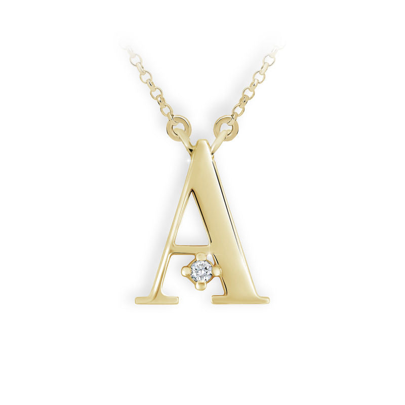 Zlatý dámsky náhrdelník DF 4506, písmeno A, žlté zlato, s briliantom